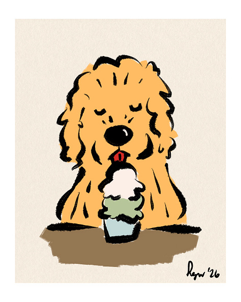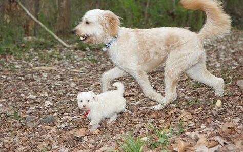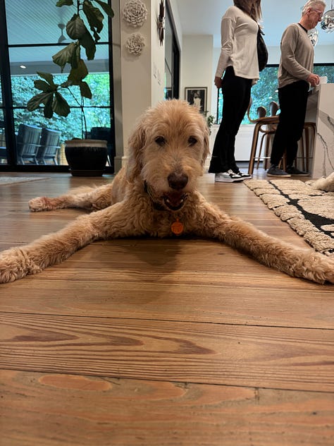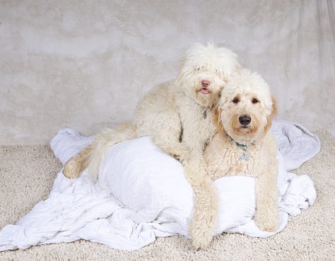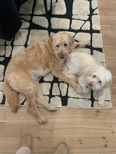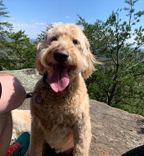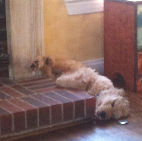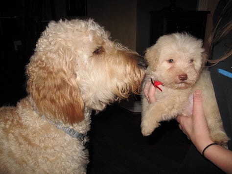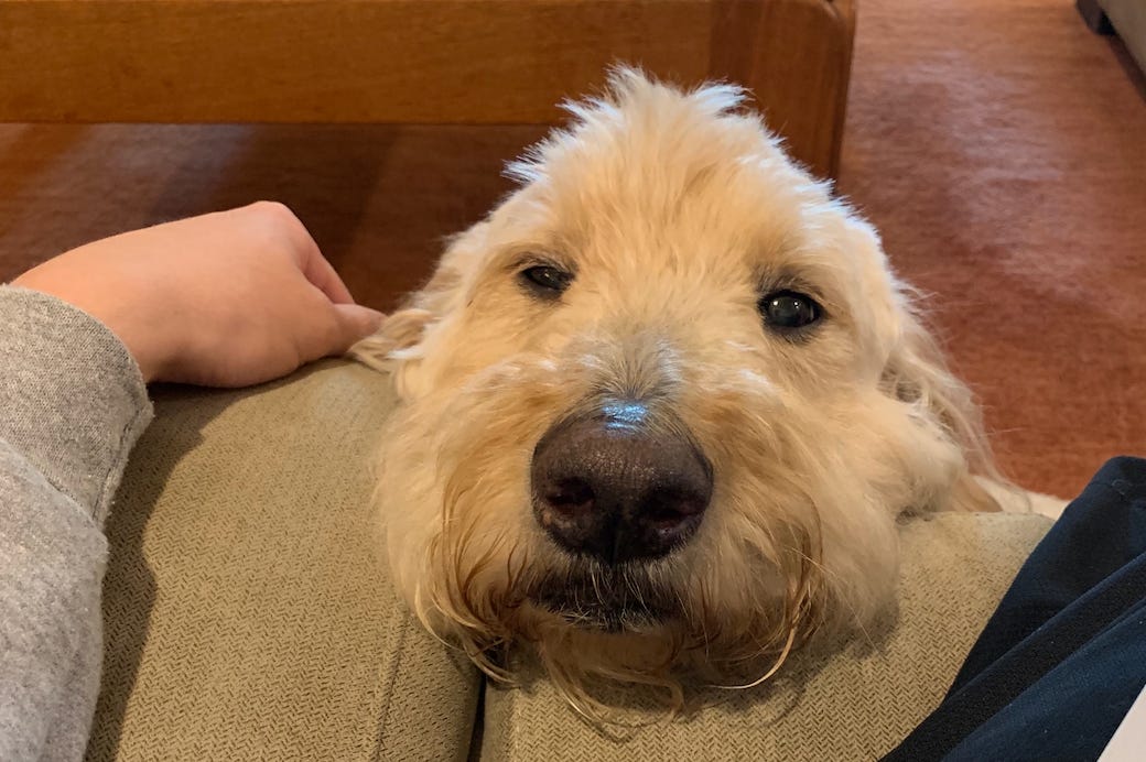 As far as Goldendoodles go, Bowie fit the mold: blond curls, standard build, wet brown eyes, a big rubbery nose. He loved ice cream and swimming. He feared the dishwasher and thunderstorms. We gave him nicknames that made sense until they didn’t: Bo-Bo, Bobs, Bo-Ba-Lob, Mr. Bo, Bobalina, Bobini, The Velveteen Bobo, and, for some reason, Theo.