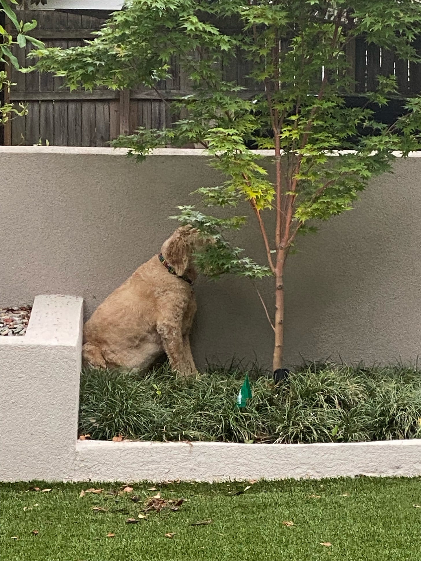 Bowie could open doors and outsmart even the most complicated of my mother’s dog-proofing efforts. Just weeks ago, he found a way to the forbidden second floor by moving a fifteen pound weight (we still don’t know how exactly) and squeezing himself past the gate affixed to the staircase. These efforts were often in pursuit of personal space, as Bowie loved solitude in closets and corners and even the crawl space under the house. I once caught him hiding behind a tree far too small to conceal his furry frame. The photo makes me laugh to this day.