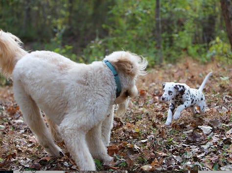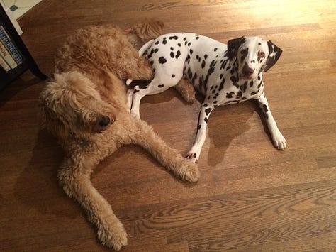 Bowie was two when we got Henry (a fuzzball of an albino mutt) and four when Ziggy (the Dalmatian) joined the pack. They became a chaotic trio, tangling their leashes on daily walks and harmonizing their barks when neighbors passed our house.